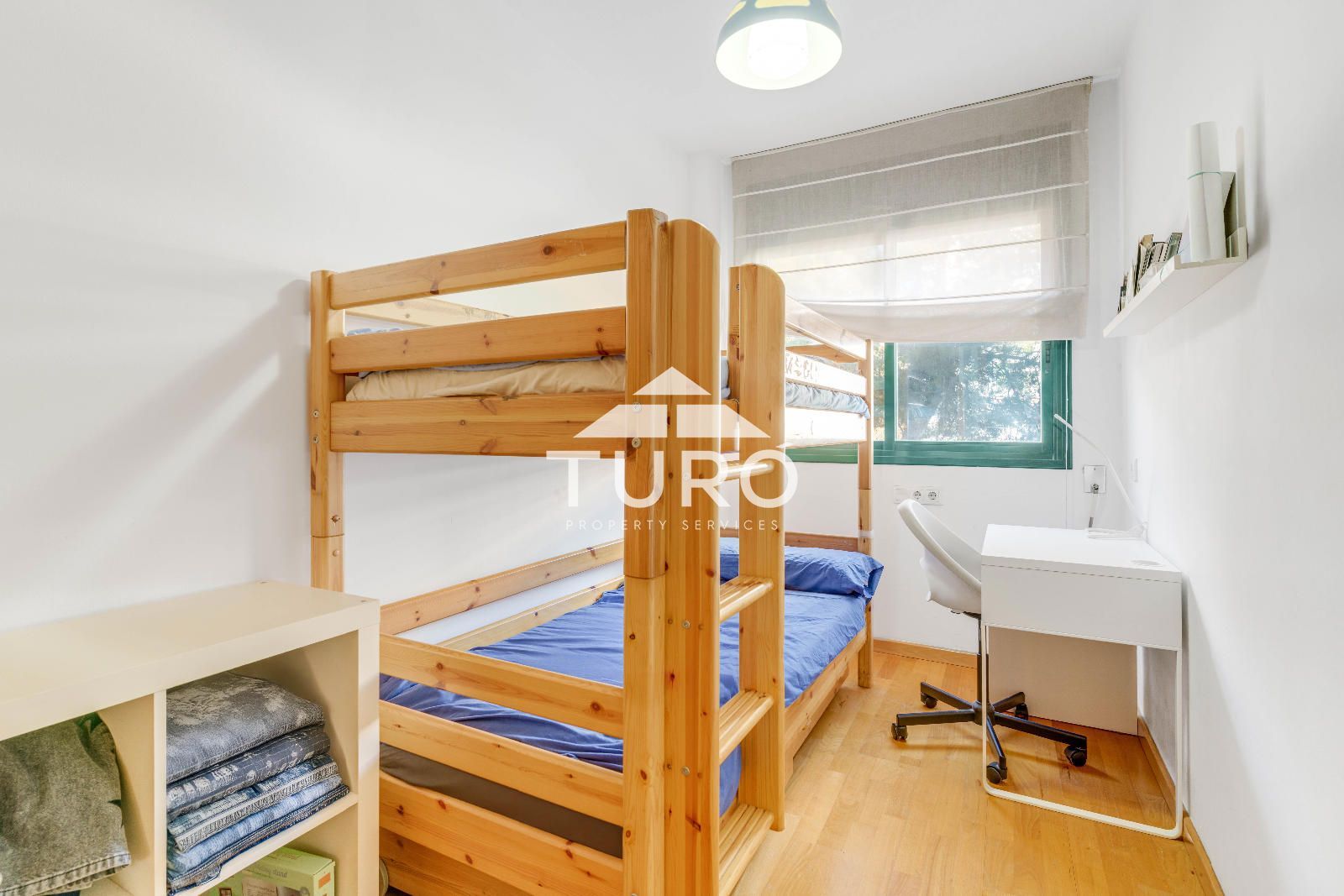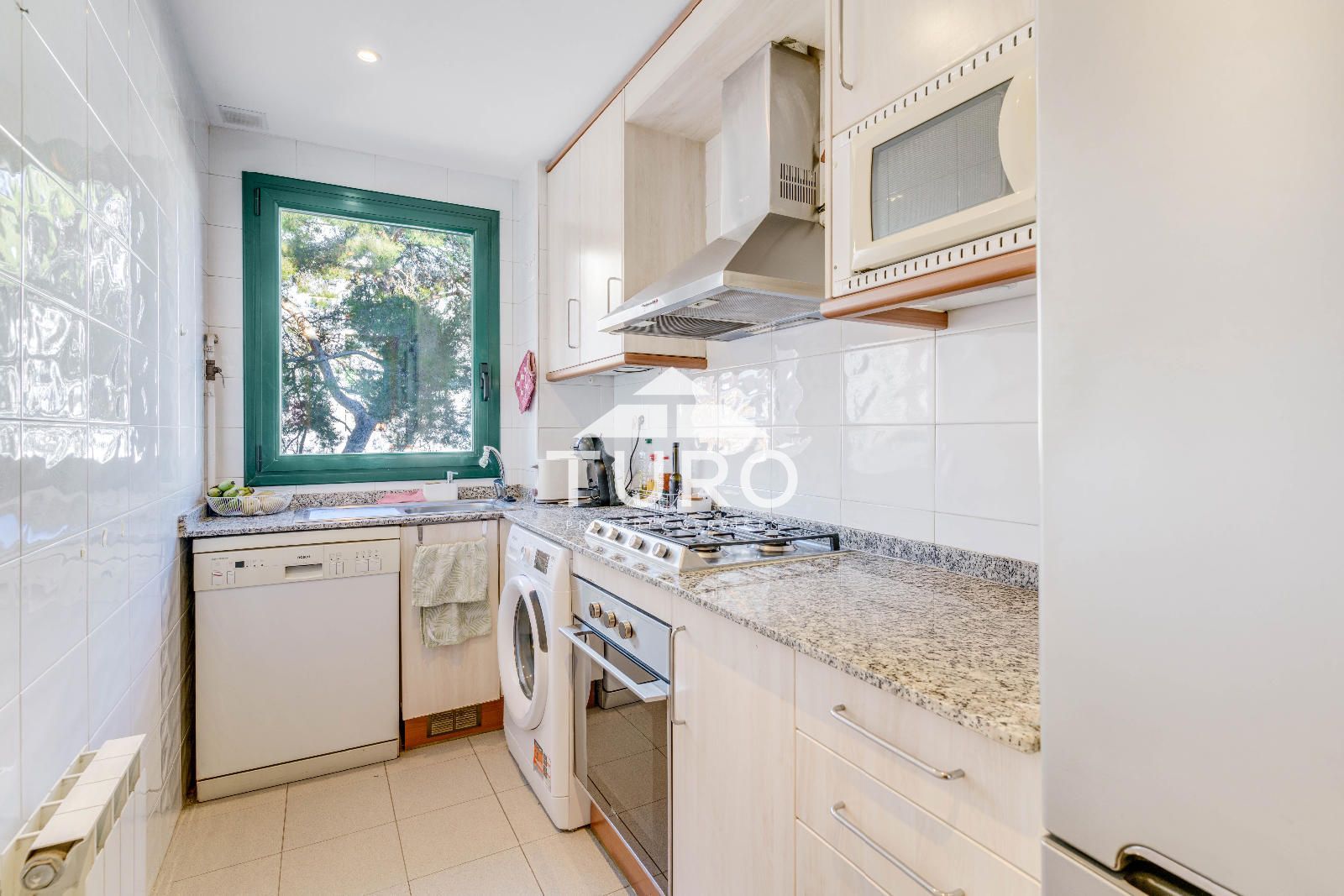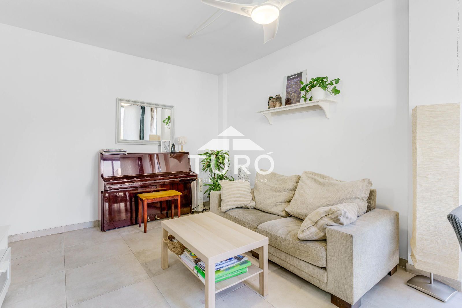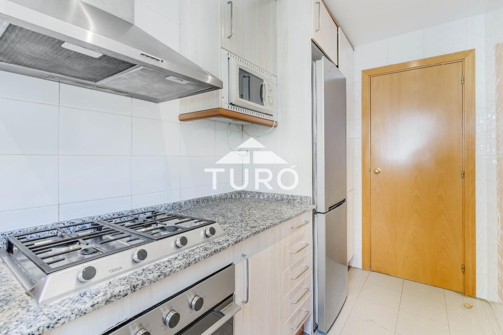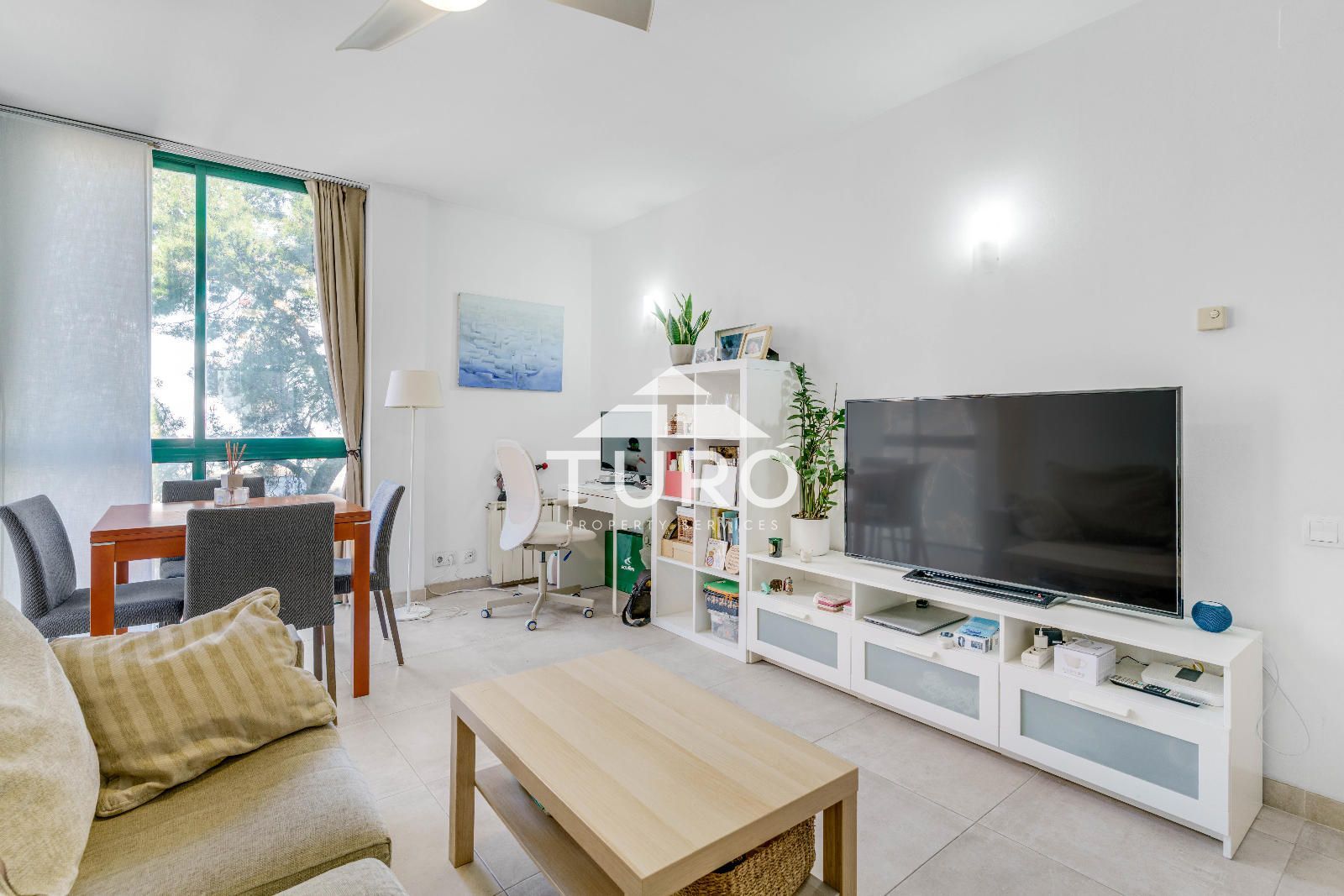L'accés es fa a través d'un rebedor que distribueix les diferents zones. La zona de nit s´organitza al voltant d´un ampli distribuïdor amb vestidor, des del qual s´accedeix a l´habitació doble, l´habitació individual i el bany complet. El saló-menjador, el cor de la casa, destaca pel gran finestral cantoner que inunda l'espai de llum i genera una agradable sensació d'amplitud. Aquest ambient, especialment tranquil, està connectat a la cuina independent, cosa que facilita el dia a dia.