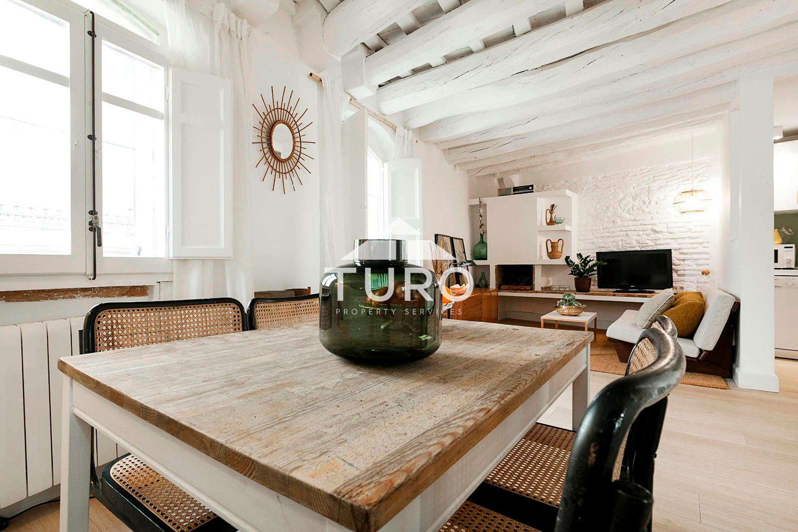 Situado en pleno corazón del barrio del Born en Barcelona, este espacioso apartamento es ideal para una pareja o persona sola que busque confort y una ubicación privilegiada. Completamente amueblado y equipado, cuenta con una gran habitación con bañera, además de un segundo baño con ducha.