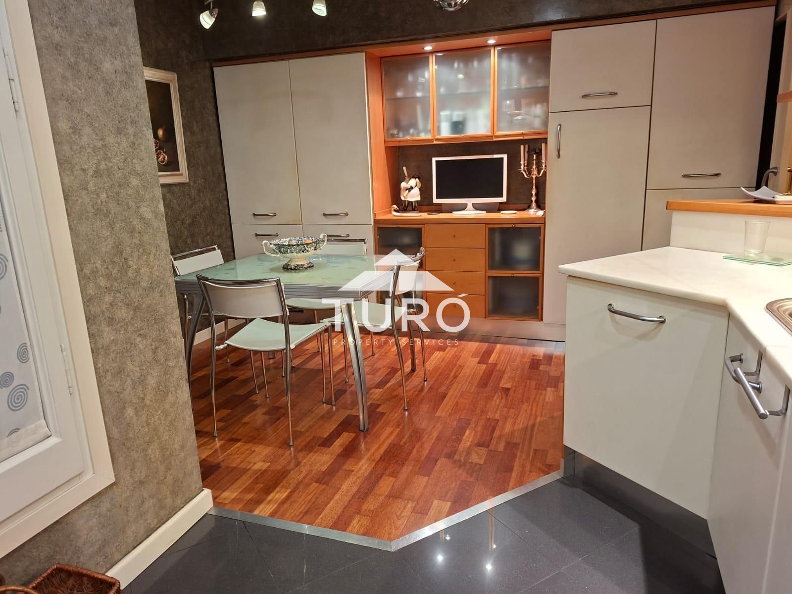 La cocina, completamente equipada con electrodomésticos INTEGRADOS, se convierte en un espacio funcional y agradable para el día a día al ofrecer una práctica y cómoda zona OFFICE para comidas en familia .